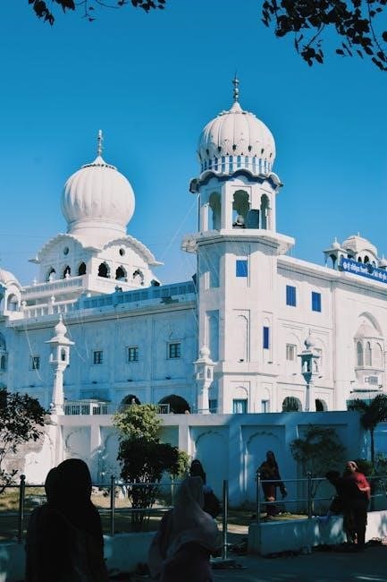 Japji Sahib’s structure comprises forty pauris (stanzas) and concluding salokas, readily available in English PDFs for detailed study and comprehension.